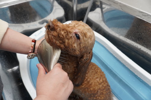 従来のマイクロバブルバスは、シャンプー前後に10分程度の入浴が必要ですが、ウルトラファインバブルシャワーは、シャワーヘッドから直接出てくるので浸かる必要もなく普通のシャンプーと同時に行えますので、子犬から老犬まで負担なく使用できます。